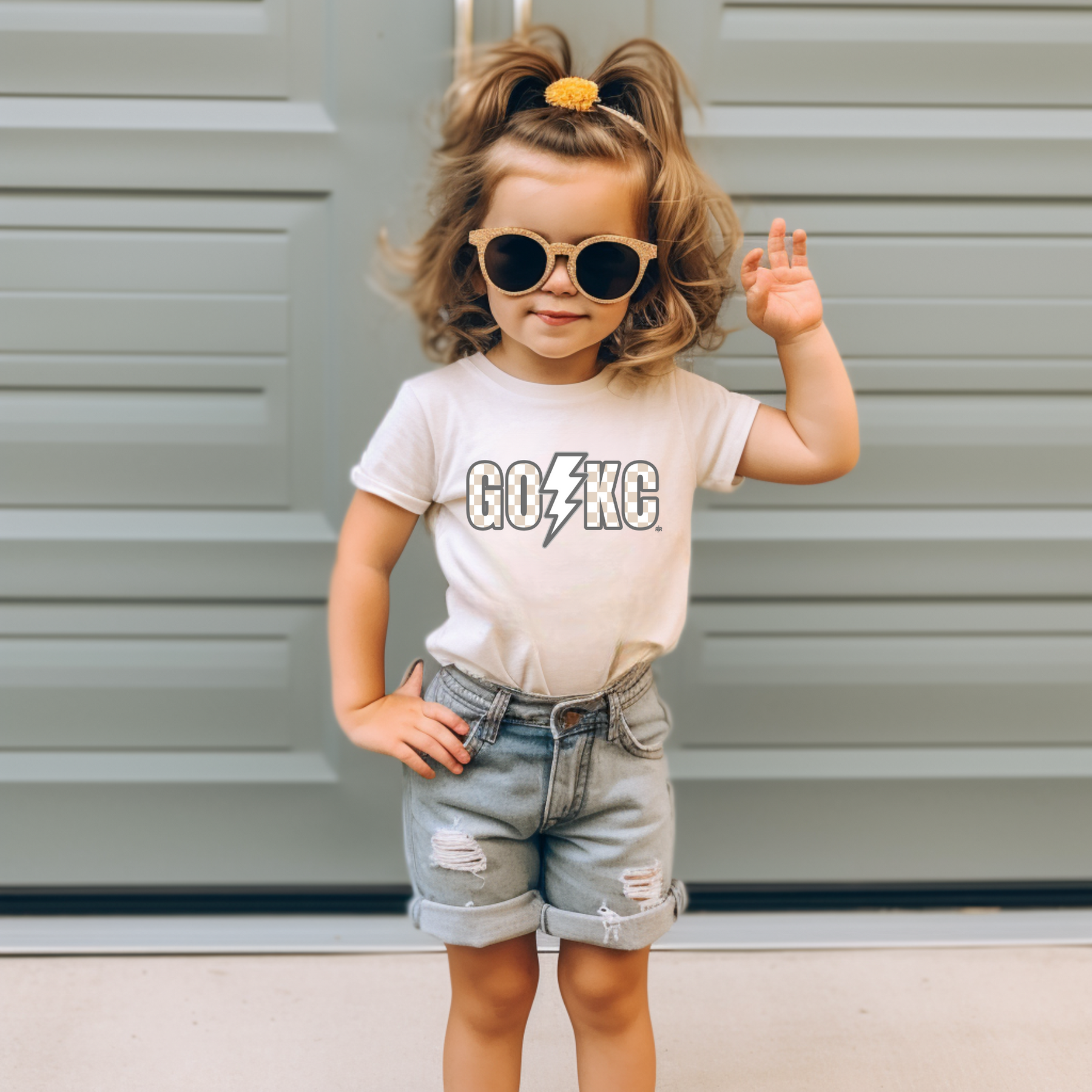 GO KC Checkered Lightening Bolt Ivory Graphic Tee