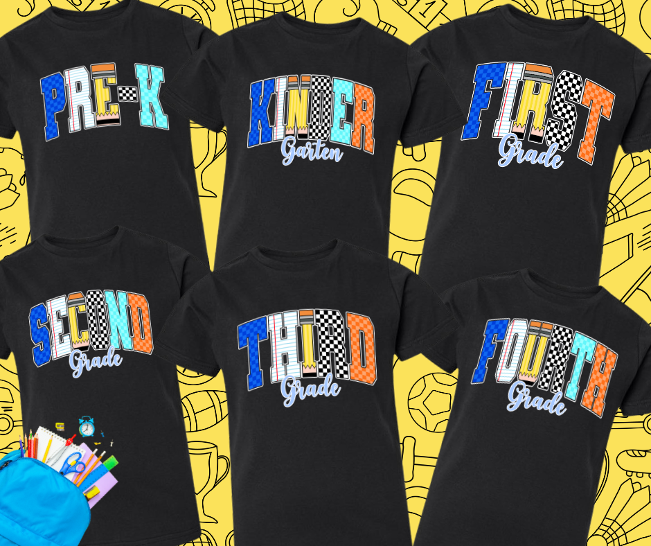 Retro School Supplies Grade Level (Pick your grade & tee color)