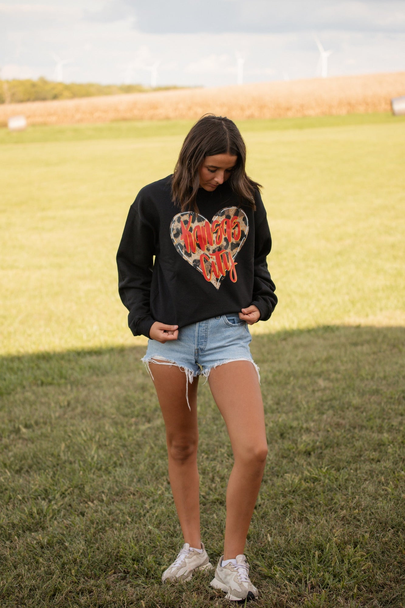 Leaoprd Heart w/ Red Kansas City Black Sweatshirt or Tee